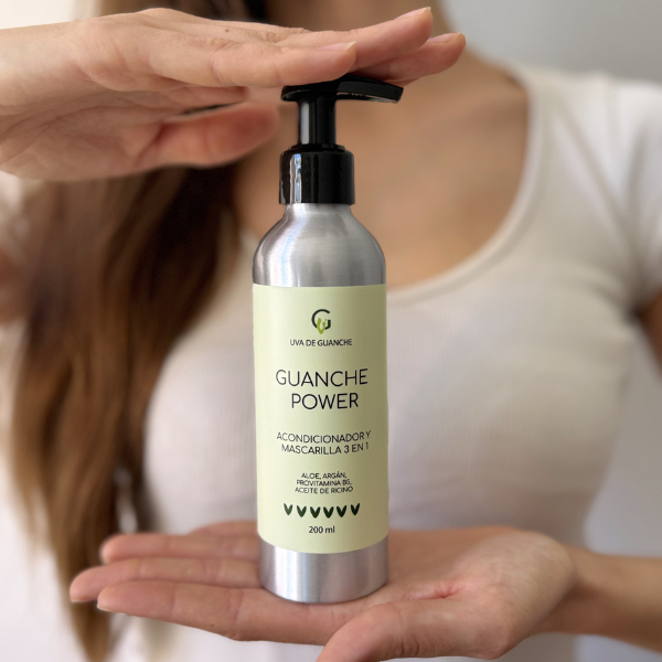 Debido a la composición de sus ingredientes Guanche Power es muy versátil. El aloe vera usado ya por nuestros aborígenes junto a la provitamina B5 (pantenol) aportan una profunda hidratación al cabello, aumentando su brillo. La combinación de aceites vegetales como argán y ricino junto a la vitamina E serán tus aliados para proteger tu cabello contra el sol, agua salada y cloro.